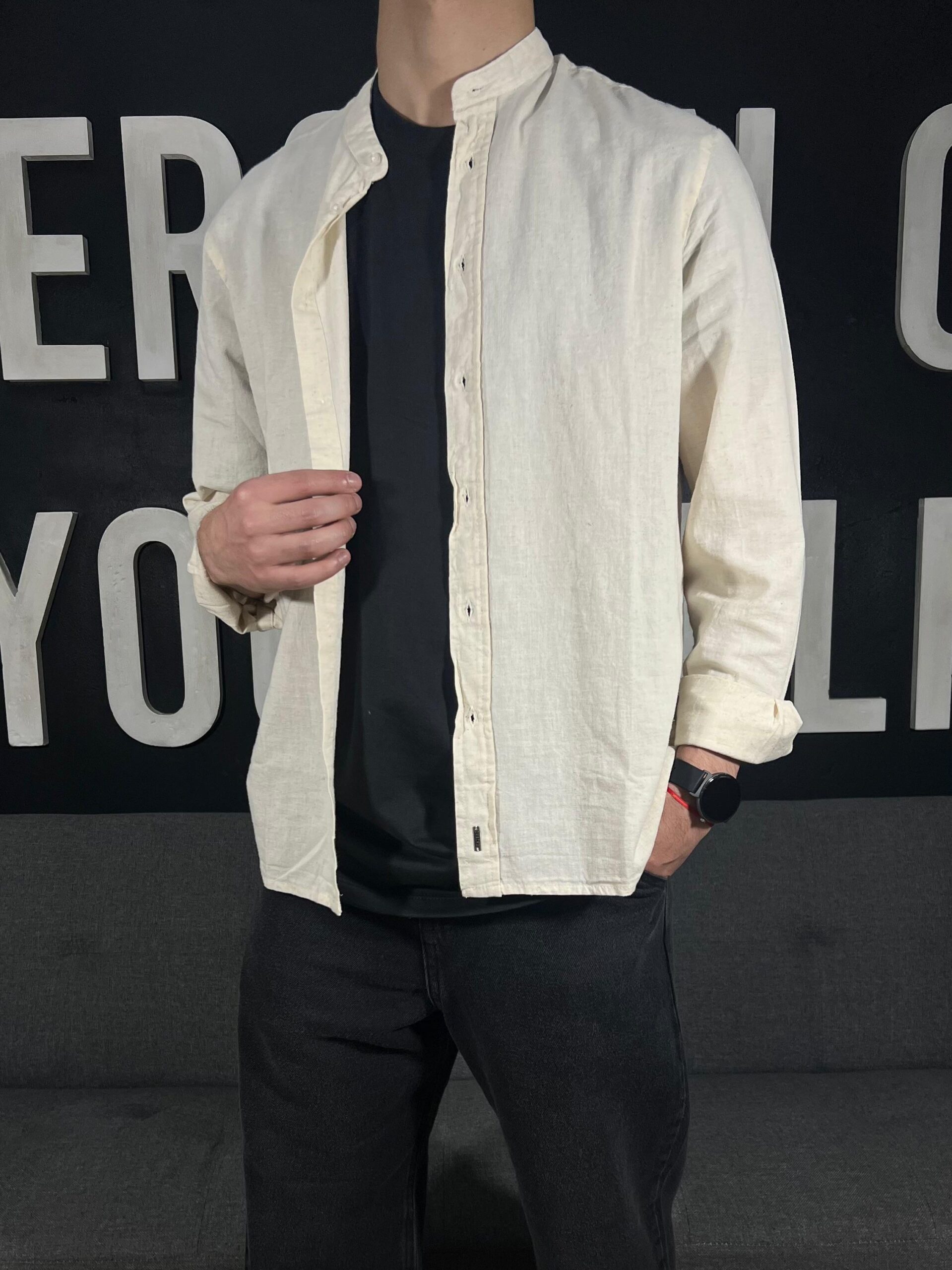 Camisa De lino Cuello Mao Art 60015